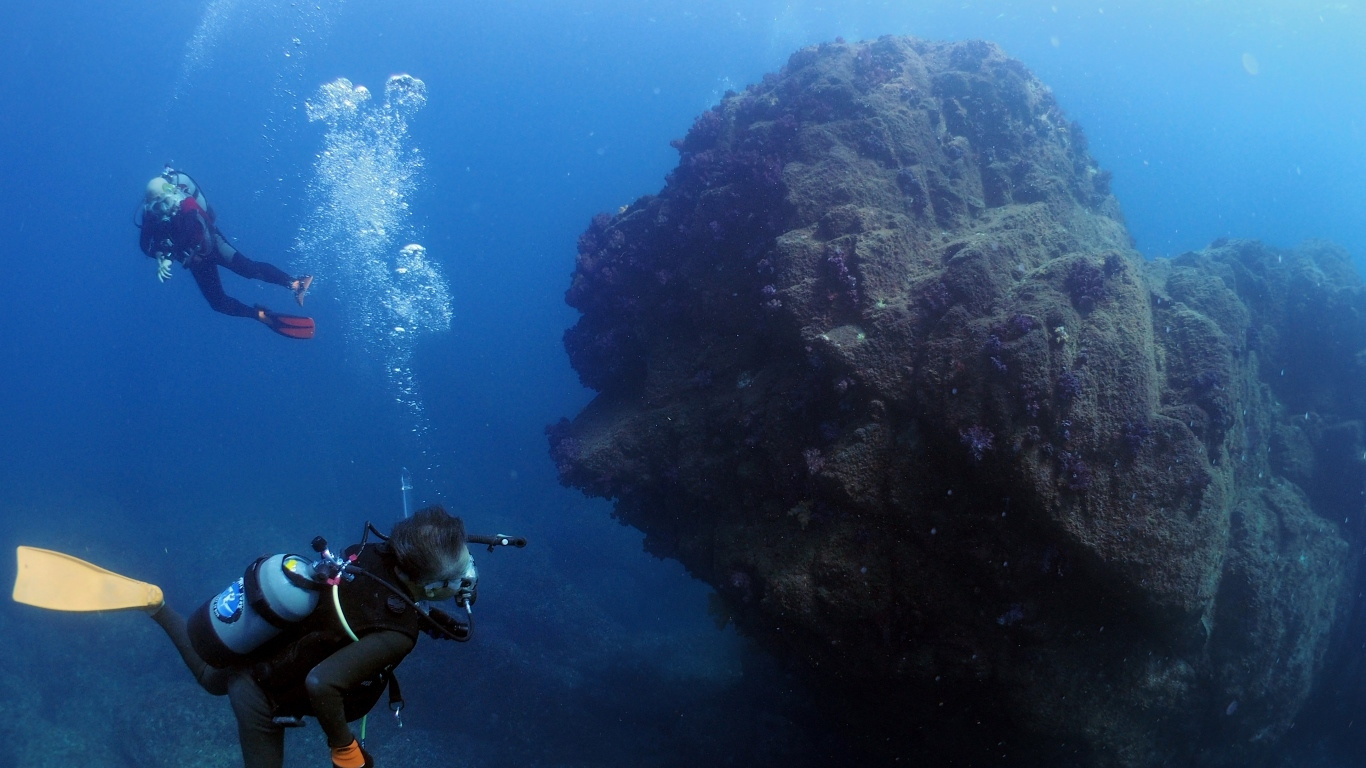 アーチをくぐったり、変わった形の岩のまわりを泳いだり、切り立った崖のような岩の壁に沿って泳ぐのが好きな地形派ダイバーも満足。